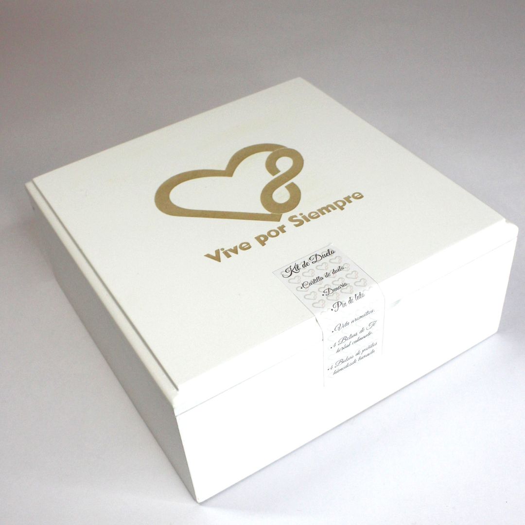 «Este completo y funcional kit de duelo ha sido creado para acompañarte en cada etapa del proceso. Incluye una cartilla con guía para el manejo del duelo, una vela aromática de lavanda, pañitos húmedos con esencia relajante, un té tranquilizante, un pin metálico con el símbolo del duelo y un denario dorado. Cada elemento está pensado para ayudarte a encontrar calma, honrar la memoria y llevar contigo el recuerdo de ese ser amado.
