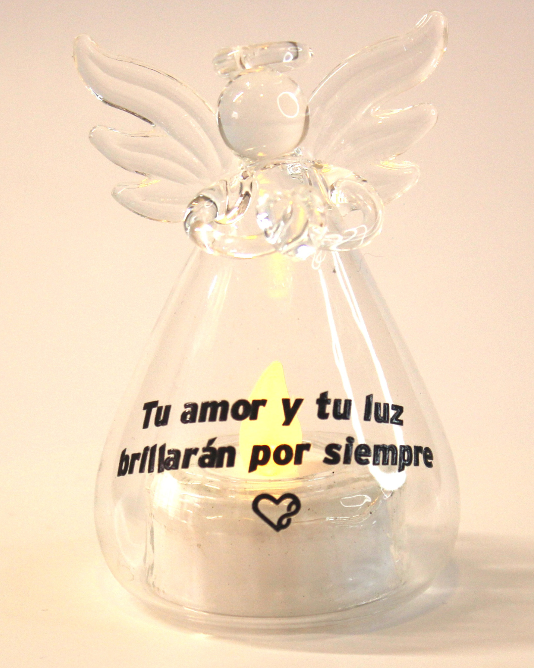 Este portavelas de cristal con forma de ángel, acompañado de una hermosa frase de despedida, brindará consuelo y paz en los momentos de tristeza.
